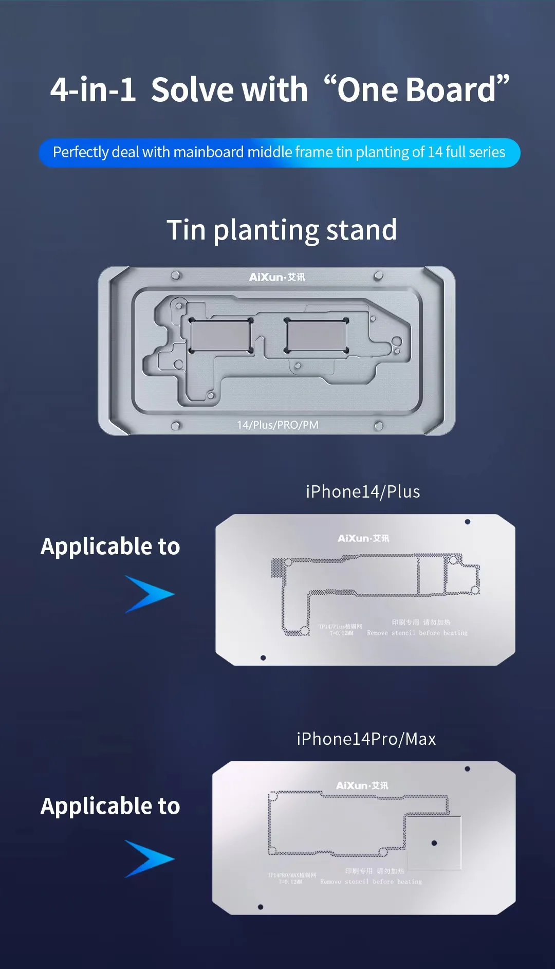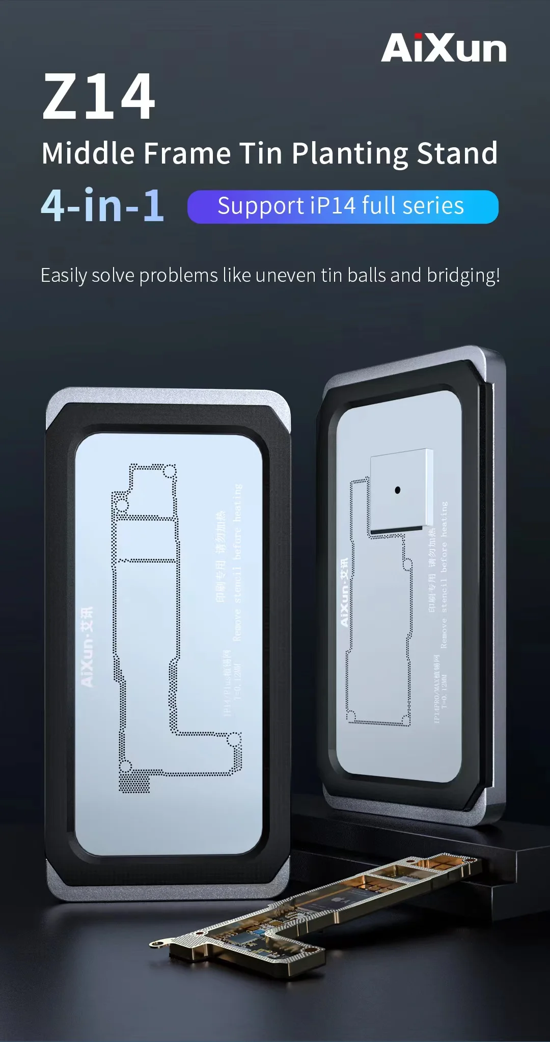 - AiXun Z14 Middle Frame Tin Planting Stand, 4-in-1, supports iPhone 14/14 Plus/14 Pro/14Pro Max, easily solves problems like uneven tin balls and bridging