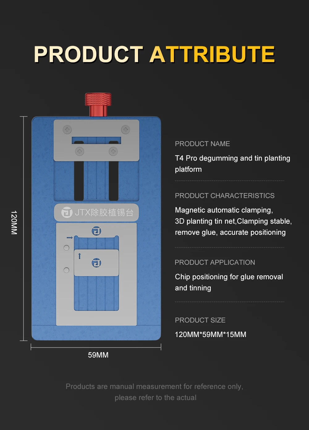 JTX T4 Pro Universal Chips Glue Removal and Tin Planting Platform Set for iPhone / Samsung / Hisilicon / Android RAM
