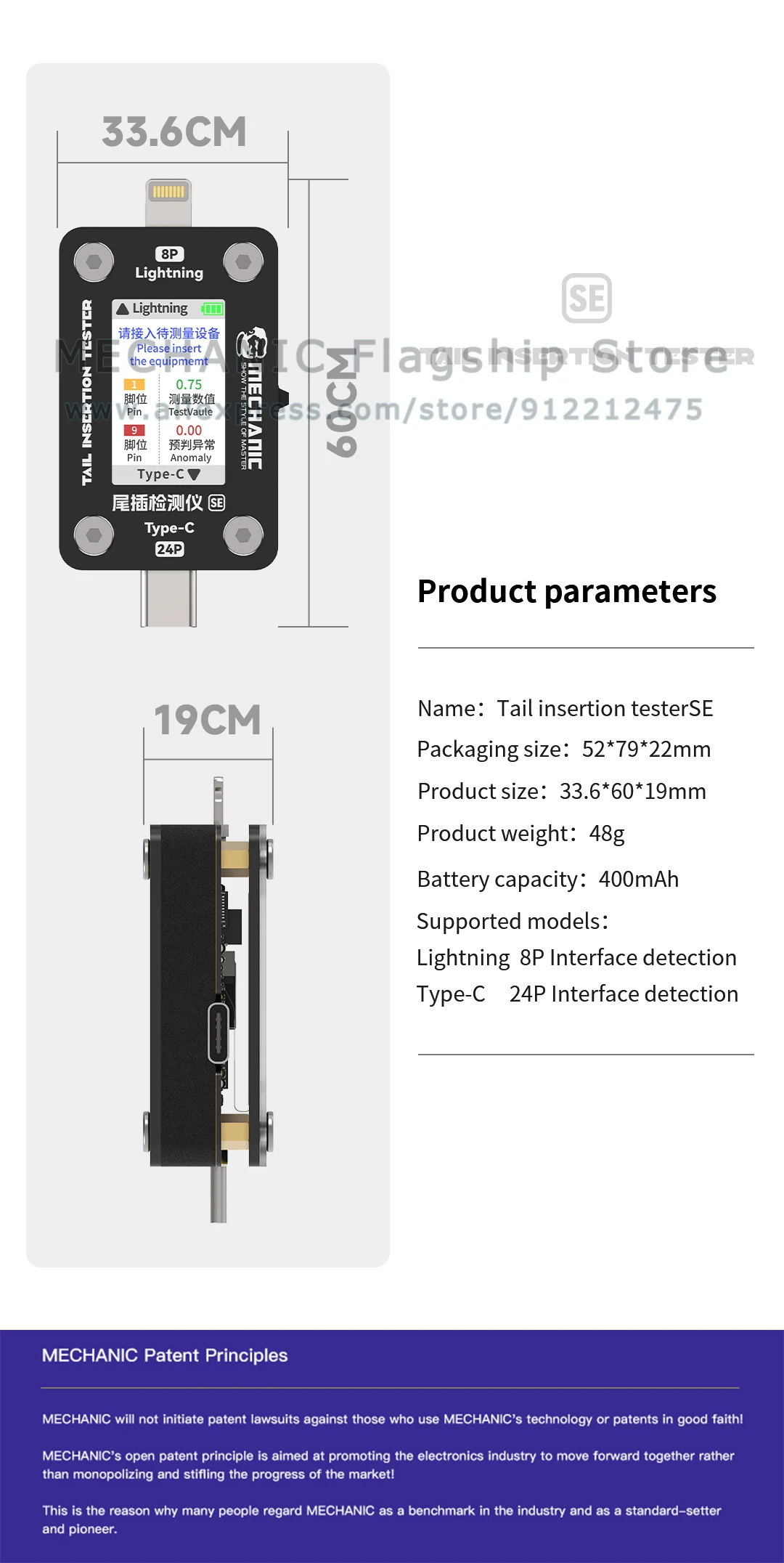 Mechanic T-824 SE Type-C to Lightning High Precision Digital Display Tail Insertion Tester