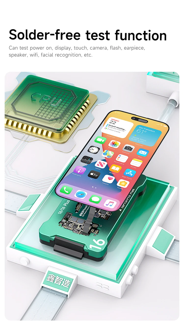 1. XZZ iPhone 16 series layered test stand 4in1 is compatible with four models of iPhone 16/16Plus/16Pro/16 Pro Max. XZZ Phone 16e motherboard layered test fixture for iPhone 16e.