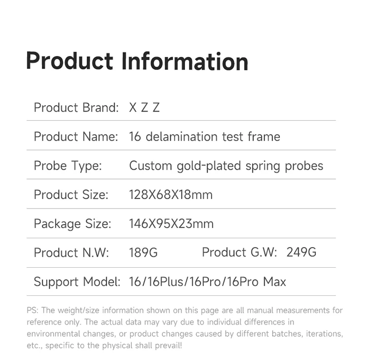 1. XZZ 16 series layered test fixture 4 in 1 for iPhone 16/16 Pro/16 Plus/16 Pro Max.
