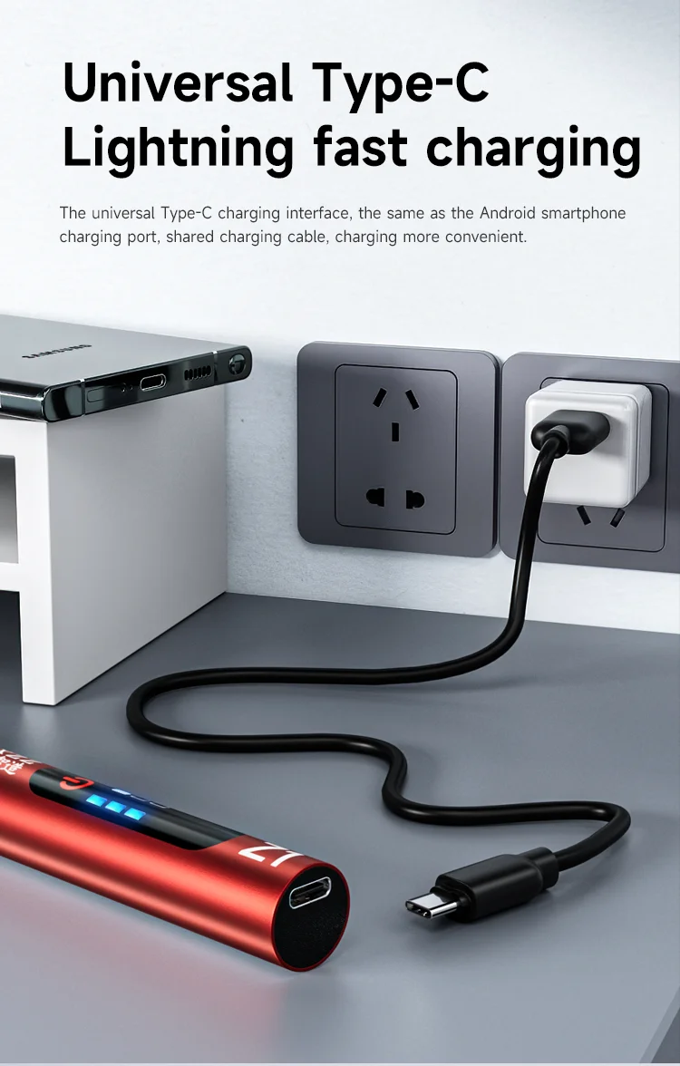 Universal Type-C Lightning Fast Charging: The universal Type-C charging interface, the same as the Android smartphone charging port, shared charging cable, charging more convenient.