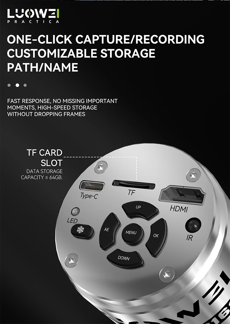 One-click capture/recording customizable storage path/name fast response, no missing important moments, high-speed storage without dropping frames